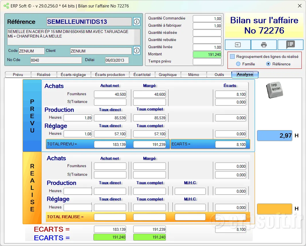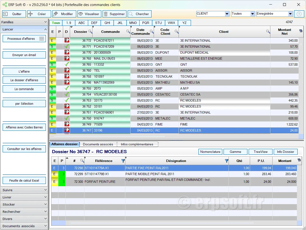 La différence par rapport aux gestions commerciales de grandes diffusions, est ce module spécifique permettant de gérer le portefeuille de commandes clients et la production de l’atelier :