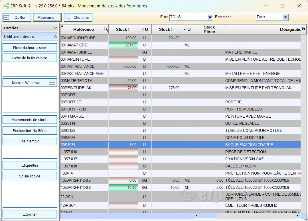 Outil simple et efficace pour gérer les stocks de fournitures, matières ou produits finis et semis finis.